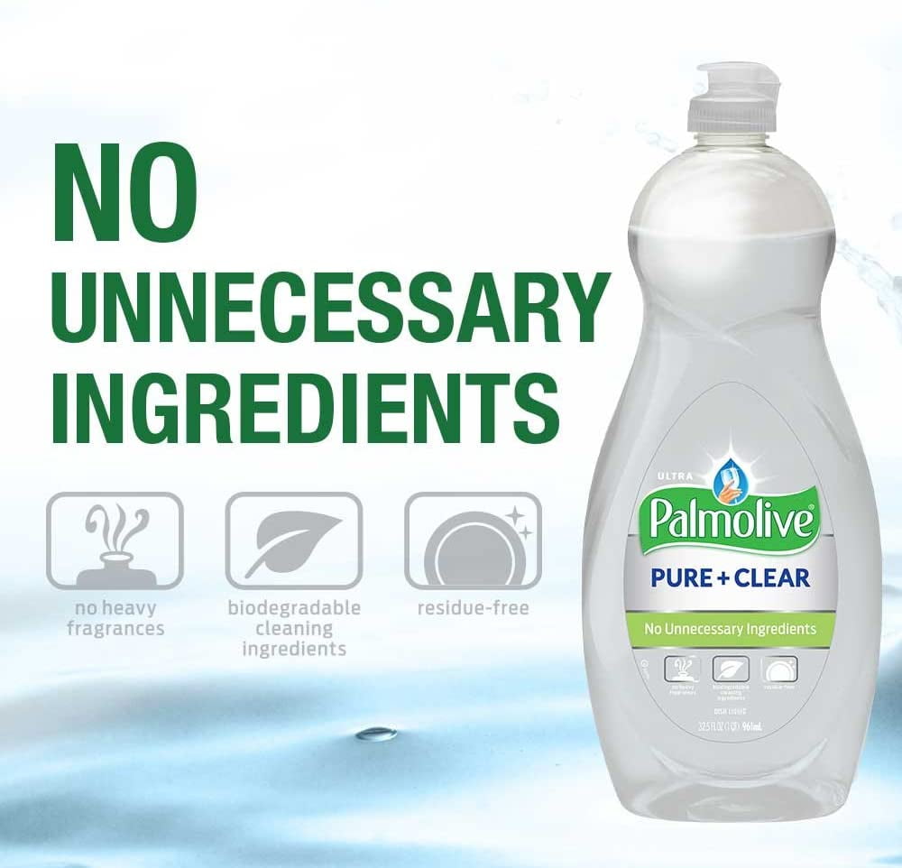 Palmolive Ultra Liquid Dish Soap, Pure and Clear, 4 Count Palmolive Ultra Liquid Dish Soap Pure + Clear 32.5oz Pack (3) 181 15 offers from $18.10 Palmolive Pure plus Clear Ultra Concentrated Dish Liquid, 20 Ounce, Pack of 3 215 6 offers from $17.99 3 Pk. Ultra Palmolive® Pure Clear® Ultra Concentrated Dish Liquid, 10 Fl. Oz (30 Fl Oz Total) 71 4 offers from $13.25
